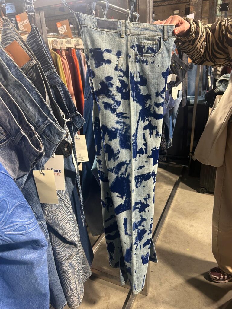 Tijdens onze ronde over de beursvloer trok een specifiek paar jeans direct de aandacht. Het bleek een ontwerp van Le Faxx. Dit bedrijf is achter de schermen een belangrijke productiepartner voor veel modemerken in Europa. Vanuit hun eigen fabriek in Turkije regelen ze alles: van het weven van de stof tot het maken van opvallende details.
